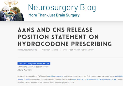 AANS and CNS Release Position Statement on Hydrocodone Prescribing Last week, the AANS and CNS issued a position statement on Hydrocodone Prescribing Policy, which …
